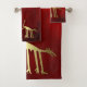 Red Golden geoglyphs Peru nazca lines. Ancient aliens Bath Towels. Home Decor Bathroom Towel Set- Tribal arts ancient man on a red grunge style design. You can customise the colour of your golden animals mysteries to match your bathroom theme. Great gift idea for those that love the mysteries of the planet, You can purchase the hand towel, wash or bath towel separately.