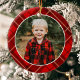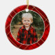 Red Traditional Christmas Plaid Photo Ceramic Tree Decoration