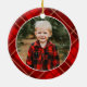 Red Traditional Christmas Plaid Photo Ceramic Ornament features your photo on a beautiful red and green Christmas plaid.