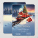 Beautiful Red Train Christmas Tree Holiday Party Invitation
