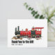Express your gratitude in style with our Red Train Flat Thank You Card. Featuring a charming red train design, this card is perfect for thanking friends, family, or colleagues for their thoughtful gifts and gestures. The flat design offers a sleek and modern look, while the ample space inside allows you to pen your heartfelt message. Show your appreciation with a touch of elegance and warmth.