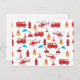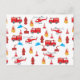 Red Transport Fire Truck Engine Brigade Pattern Holiday Postcard