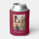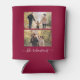 Red Trendy Script 2 Photo Collage Custom Can Cooler