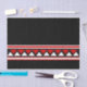 Bold black background with white and red triangles in a tribal inspired pattern for home decor, fashion accessories, gift packaging and dessert designs..