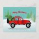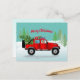 Red Truck 4x4 with Sable Sheltie, Santa Hat Holiday Postcard