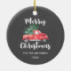 Red Truck and Tree | Grey Merry Christmas Holiday Ceramic Tree Decoration