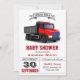 Amaze your guests with this cool baby shower invite featuring a modern red truck with eye catching typography against a white background. Simply add your event details on this easy-to-use template to make it a one-of-a-kind invitation. Flip the card over to reveal a red and white stripes pattern on the back of the card.