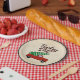 This party plate is perfect for boys (or girls) celebrating a birthday that falls near Christmas. We're trucking through the snow to celebrate you! Buffalo plaid adds a classic touch to this Christmas party theme. A red truck carrying a Christmas tree is centred at the bottom.