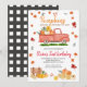 Red Truck Fall Birthday Party Hay, Leaves, Pumpkin Invitation