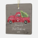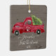 Red Truck Grey Wood Baby1st Christmas Tree Photo Ceramic Ornament