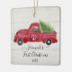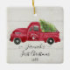 Red Truck White Wood Baby1st Christmas Tree Photo Ceramic Ornament