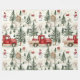 A cute, classic winter design with a vintage red truck, trees, snow and a Snowman!