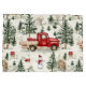 A cute, classic winter design with a vintage red truck, trees, snow and a Snowman!