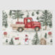 A cute, classic winter design with a vintage red truck, trees, snow and a Snowman!