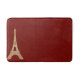 Elegant French inspired bath mat, with graphics of a rich red tufted looking background and a golden Eiffel Tower, on the far left side. Comes in three sizes.