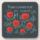 Red Tulip Dark Floral Pattern Custom Text Coaster