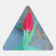 Red Tulip on Blue Grey Slate Triangle Sticker