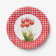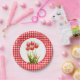 Create a cosy tablescape with this red tulip paper plate. This spring style floral paper plate features a red and white gingham plaid border. Your spring occasion table will look lovely with a vase of red tulips. Use this plate for a variety of spring holidays and occasions.