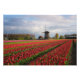 Photo print of a spring landscape with a field with red tulips and other flowers and a windmill during sunrise in the Keukenhof gardens, Bulb Region, the Netherlands.