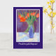 A pretty Birthday Card with 'Happy Birthday' in Welsh and a blue vase of Scarlet Tulips, from an oil pastel painting by Judy Adamson.