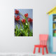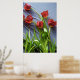 Photograph of red tulips against a blue background. Customise the poster print with your own images or text!