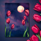 Red Tulips, Full Moon and Stars QR Code Wedding RSVP Card