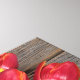 word believe on rock with red tulips in blue jean pocket on rustic wood