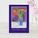 A pretty Mother's Day with the greeting in Welsh and a blue vase of Scarlet Tulips, from an oil pastel painting by Judy Adamson.