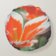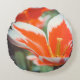 Floral themed Round Pillow featuring a photo of a spring garden. We see big red tulips on dark green background. Give a touch of natural beauty to your living space, add a charming accent to your home decor or find a stylish gift for any special occasion!