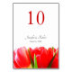 Table Number Card matching Red Tulips Wedding Collection.