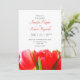 A cheerful wedding invitation with a red tulips photography on the background. Perfect for Summer events. Although this invitation is customised for a wedding party, you may change the wording to use it as an engagement party invitation or a wedding shower, for example. You can easily personalise it online. Case you wish to change text colour, font, size or position, please click the "customise further" link.