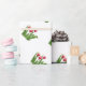 This wrapping paper features a red tulip flowers in bloom pattern on a white background.