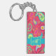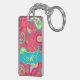 Red Turquoise Modern Paisley Pattern Monogram Key Ring