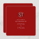 A crest monogram wedding invitation in crimson red with a minimalist design. Ready to check invitations off your to do list? Add your text, add this invitation to your cart, and a have a wonderful wedding.