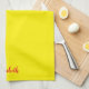 Custom Upload Add Your Monogram Initial Photo or Logo Text Elegant Modern Cute Kitchen & Dining / Table & Kitchen Linens/ Personalised Template Red Typography Name Bright Yellow Solid Colour Kitchen Towel.