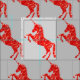 A fabric design featuring a red faux glitter unicorn. This fun fantasy design is against a customisable grey background. The background may be changed to another colour of your liking.