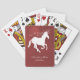 Personalise a unique wedding favour for guests with a set of Red Unicorn Wedding Favour Playing Cards.  Playing card design features a starry background with a unicorn adorned with stars.  Personalise with the groom and bride's names along with the wedding date. Additional wedding stationery available with this design as well.