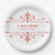 Simple and elegant Fancy Ornamental Wedding Paper Plates in red and white featuring a sophisticated art deco style ornamental flourish border. Easy to customise, simply add your wedding details in the text fields provided. Click "Customise It" to find more personalisation options.