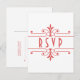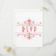 Simple and elegant Fancy Ornamental Wedding Response Postcard in red and white featuring a sophisticated art deco style ornamental flourish border. Easy to customise, simply add your wedding details in the text fields provided. Click "Customise It" to find more personalisation options.