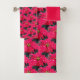 Red Variegated Poinsettia Pattern Holiday Bath Towel Set