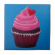 An acrylic painting of a delicious red velvet cupcake with pink frosting and a heart. These lovely tiles will sweeten your home!