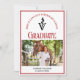 This custom red veterinary school graduation announcement card features black typography for a class of 2025 graduate above your student photo. Customise with your graduating year under the veterinary medical caduceus and photograph for a great personalised veterinarian card.
