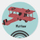 Red vintage biplane sticker - with customisable area for text, a smart way to personalise your kid's belongings
