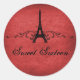 Grungy yet elegant Vintage French Flourish Sweet Sixteen Stickers in dark red featuring an Eiffel Tower design embellished with chic swirls and dots and a faux paper textured background. These unique Parisian themed Sweet 16 birthday stickers would be perfect if you are planning a french inspired party. Easy to customise, simply add the personalised text of your choosing. Click on the "Customise It" button to find additional personalisation options.