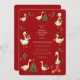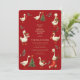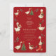 This charming Christmas party invitation features adorable vintage geese dressed in festive attire, surrounded by Christmas trees, candy canes, and other holiday elements. The design is set against a rich red background, creating a warm and inviting atmosphere. It's perfect for sending out to family and friends to celebrate the holiday season in a unique and memorable way. Personalise it with your party details and create a classic Christmas card your guests will love. This invitation design is ideal for an annual Christmas party, and makes a wonderful keepsake for your guests. Celebrate your holiday with this charming card that fits the theme of the event perfectly.