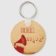Quirky and unique Vintage Gramophone Keychain in dark red featuring a silhouette of an old-fashioned gramophone and a cascade of musical notes on a digital art rendered paper background. This chic key fob will keep your keys handy with vintage flair and is perfect for any music lover. Easy to customise, simply personalise with the text of your choosing. Click on the "Customise It" button to find additional personalisation options.