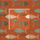 Use this red vintage kitsch fish fabric for a wide variety of sewing projects. The pattern features a red background with brown, turquoise and yellow skeletal fish that swim with the current.