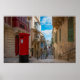 Red vintage old fashioned mail box on narrow street with stairs in Valletta, Malta