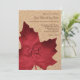 On a burlap coloured background, a large, monogrammed maple leaf accents this floral damask invitation, for the vintage wedding. It is shown on the basic paper; however, I recommend the weight and texture of the linen paper.