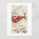 Red Vintage Santa Claus Flying Reindeer Stars Postcard